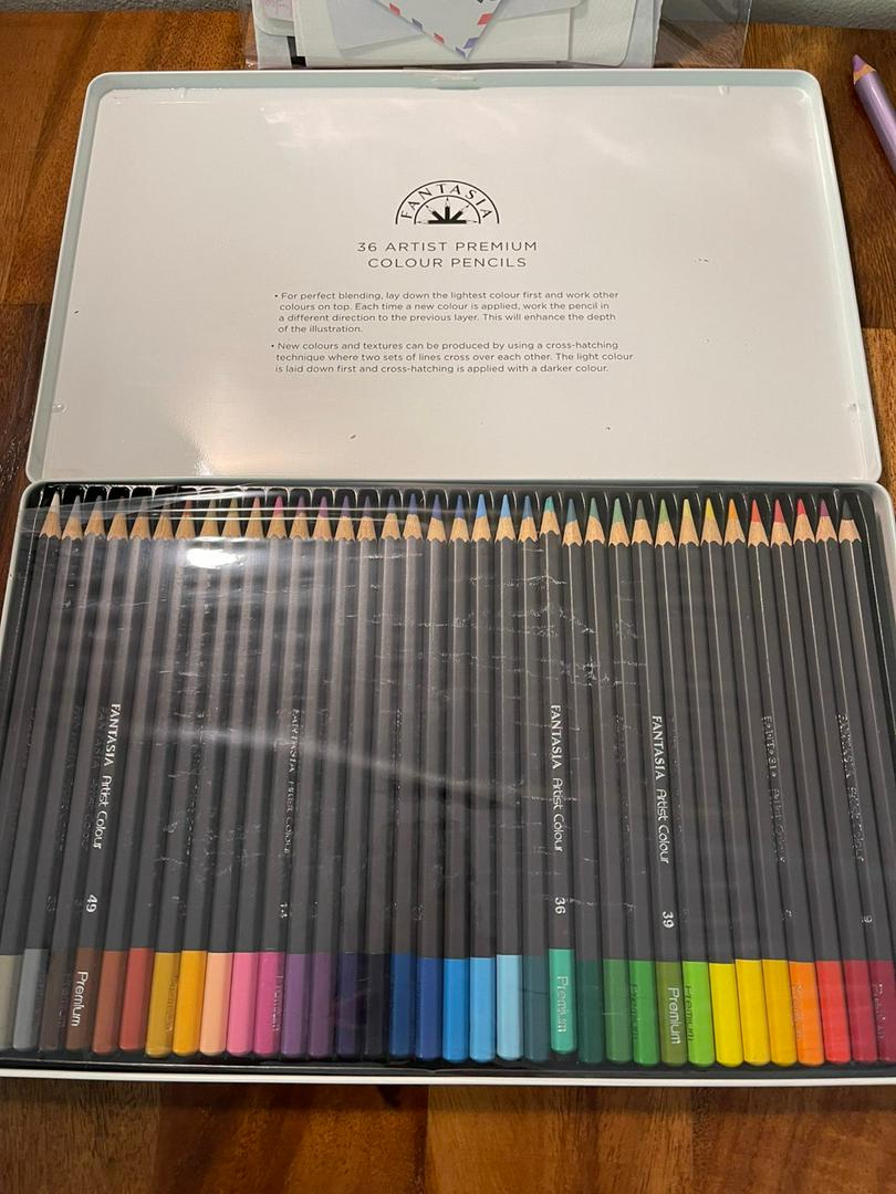 Amazon.com: Fantasia Premium Colored Pencil Set, 36 Piece ... Fantasia colored pencil set. Perfect combination of colors have extra thick blendable leads and are manufactured with carefully selected pigments to obtain high color concentration and give depth to colors. Set contains 12 colored pencil, housed in a metal tin. What's in the box Colored Pencils Customers who bought this item also bought