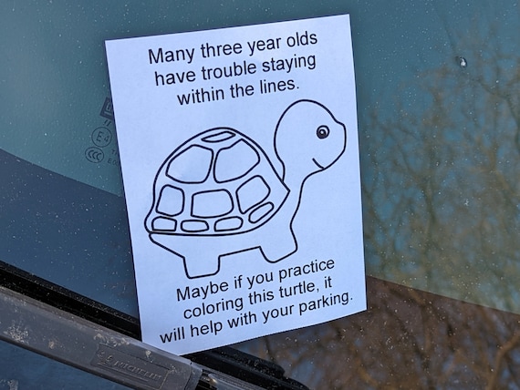 Parking Between the Lines - Coloring Book Note | Zazzle.com Funny little parking note for the idiots who can't seem to park between the lines. "Toddlers have a hard time staying in the lines too. Maybe if you practice coloring, it will help teach you how to park." Features fun little turtle sketches in a coloring book style. The perfect little gift to leave on the windshield for that person who just doesn't know how to park, is inconsiderate, or has no ...