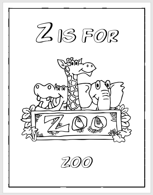 Letter Z Activities - Worksheets, Coloring Pages, and Crafts Free Letter Z Coloring Pages. Next, we move along to the letter Z coloring pages. Coloring pages are a fun way to teach preschoolers what letters look like. Many coloring pages also teach beginning letter sounds by displaying common nouns that start with the featured letter. Z is for Zipper Letter Z Coloring Page